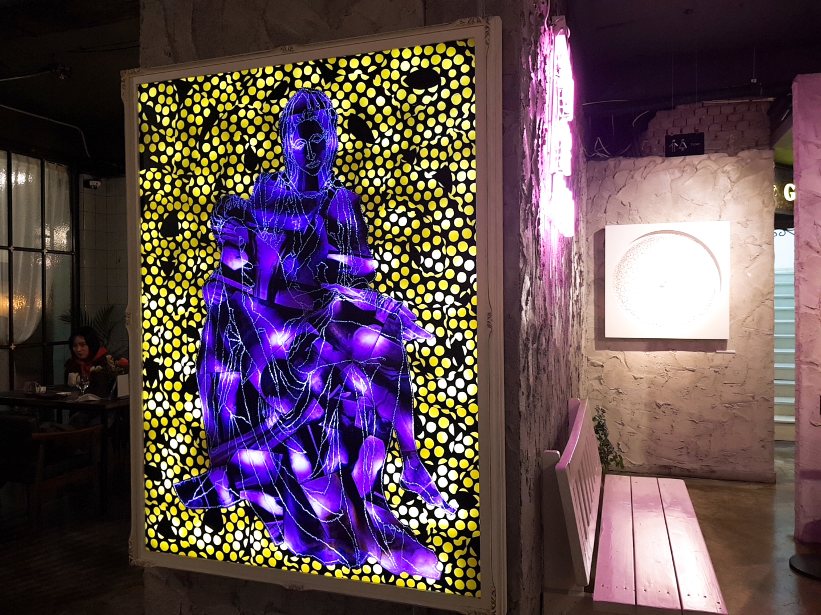 올라가는 계단쪽에 여러가지 미술작품들이 있어요